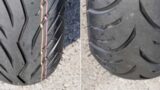 ・街乗りで使うならセンターの溝は7000kmくらいまで持ちます。ただし酸化防止剤が少ないので1年もすればタイヤが硬化して危険な状態になります。